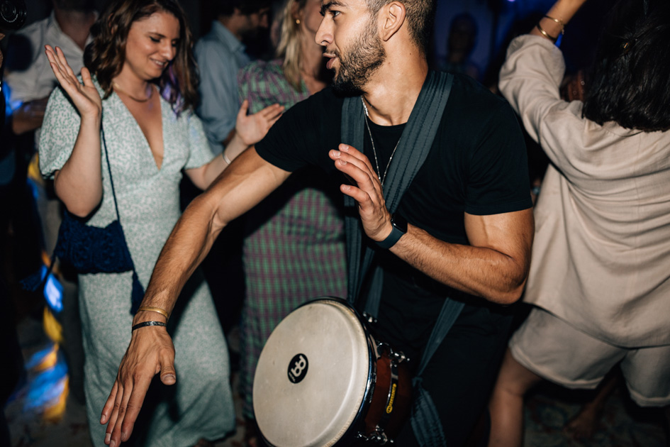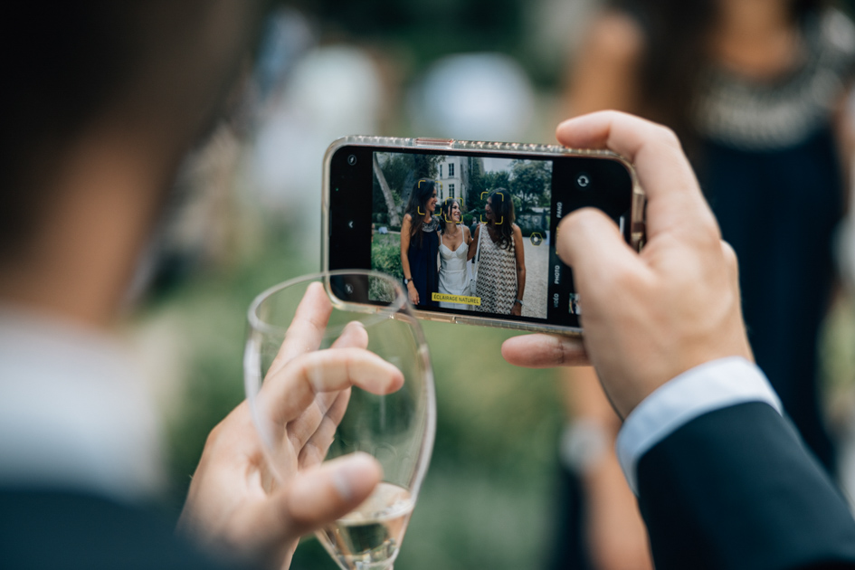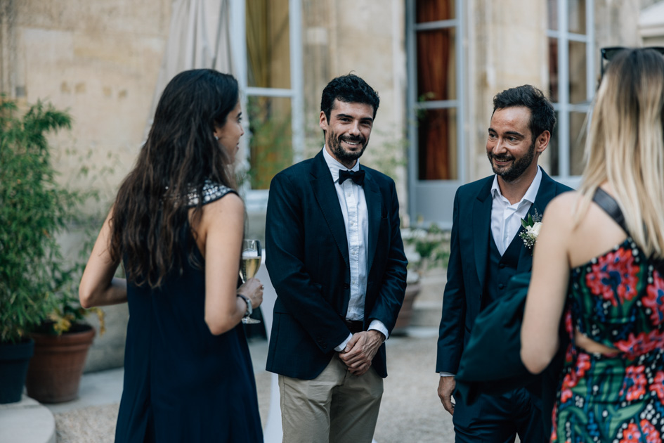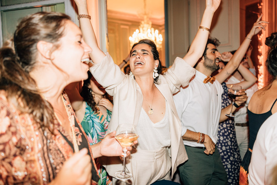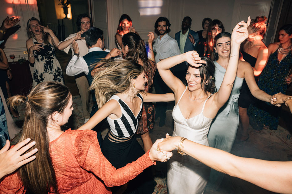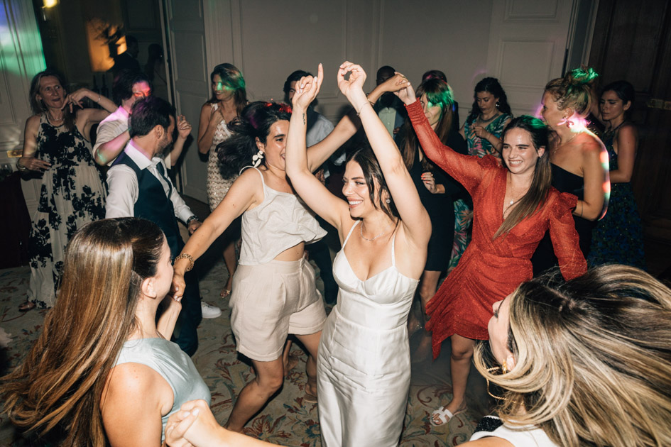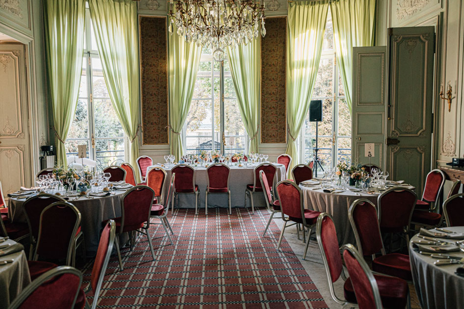 Après la cérémonie, les invités ont profité d’un cocktail en plein air avant de rejoindre les salons pour un dîner élégant. La configuration du lieu permet une transition fluide entre les différents temps forts de la journée, de la cérémonie à la soirée dansante.