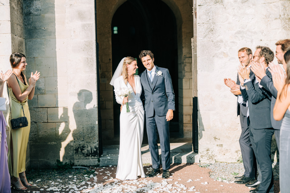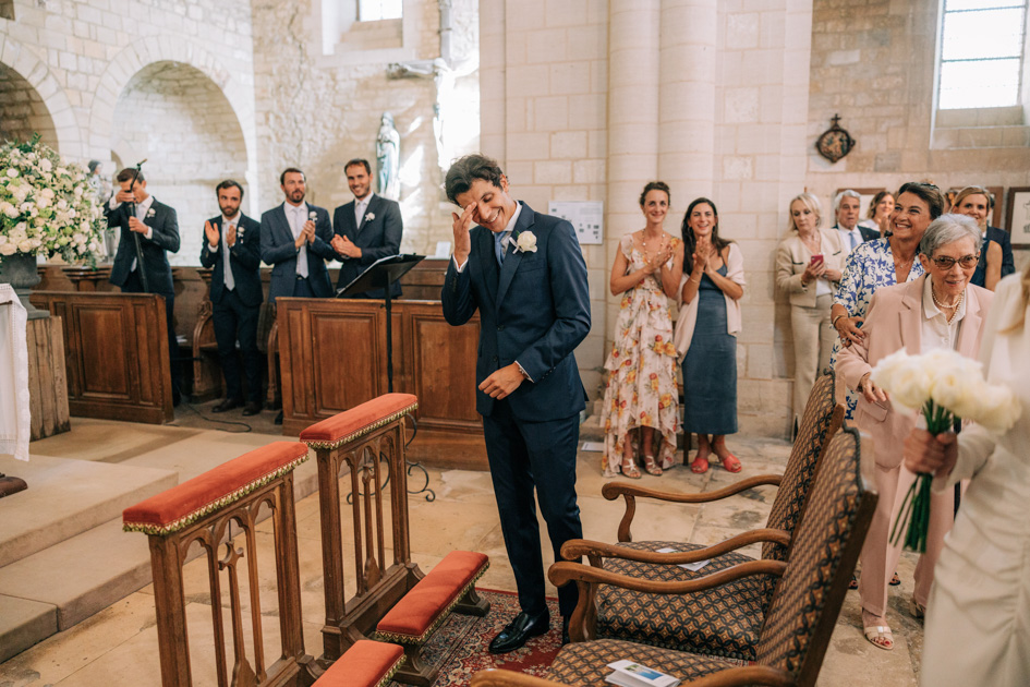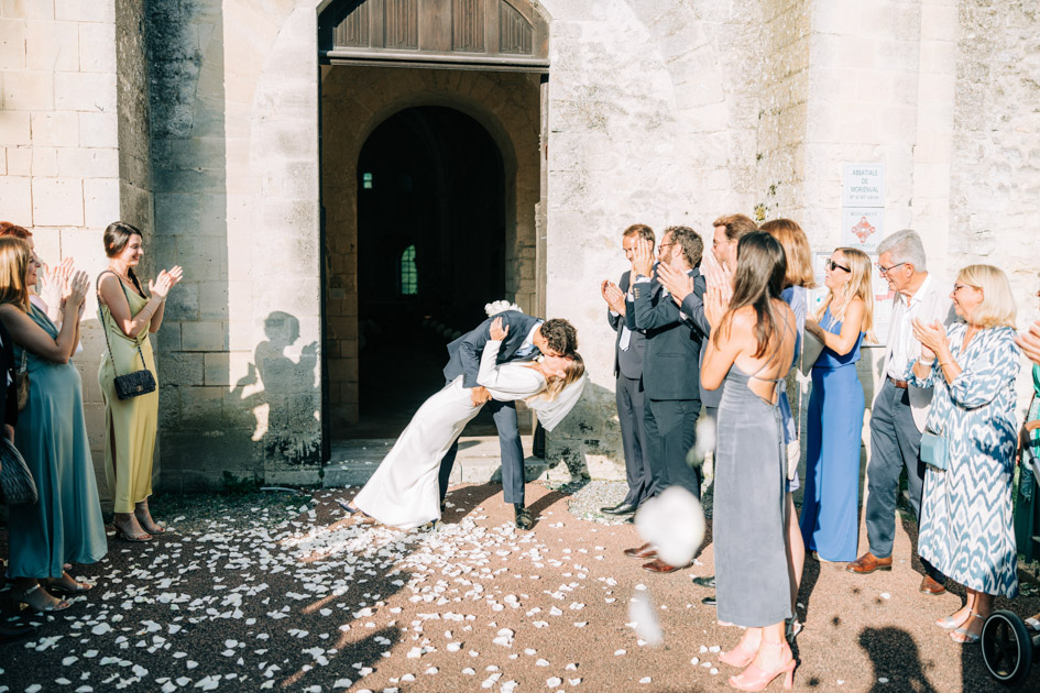 La cérémonie à l’abbaye est un temps suspendu. Le silence, la pierre, la hauteur des voûtes. Tout invite au recueillement. En tant que photographe de mariage, mon rôle est d’observer, d’anticiper et de capter les émotions réelles : un regard échangé, une main serrée, un sourire discret.