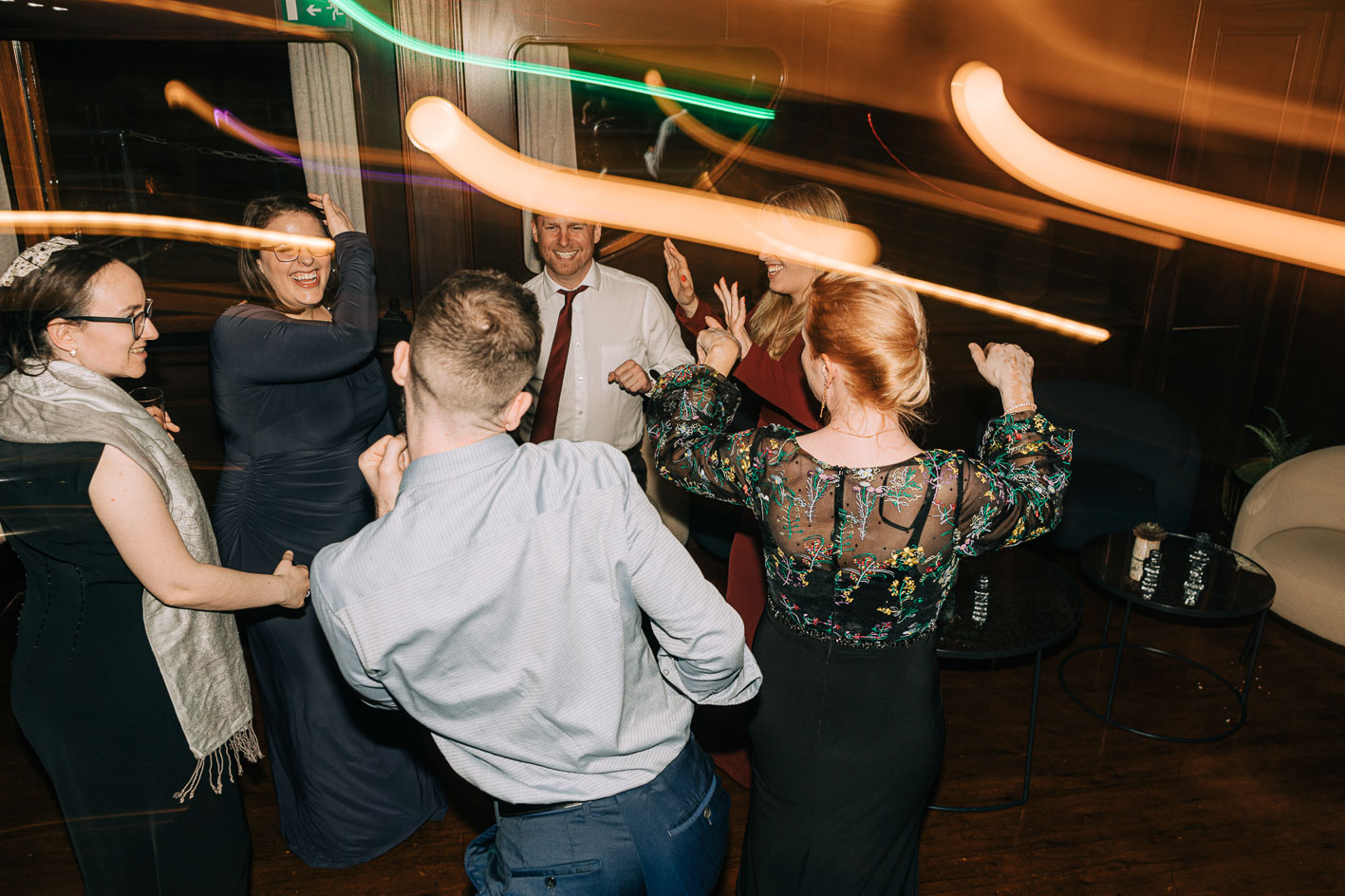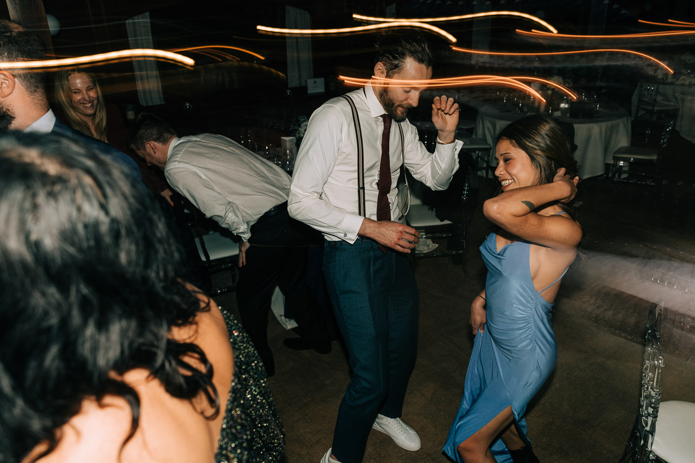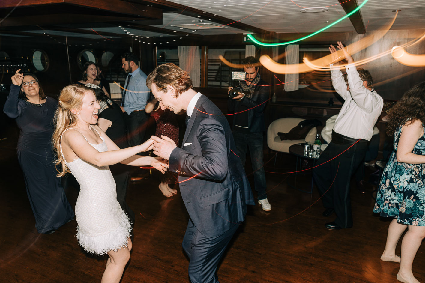 Photographier un mariage péniche demande une attention particulière à la lumière, aux reflets et aux mouvements. La Seine agit comme un miroir, offrant des ambiances uniques à chaque instant. Le cocktail, baigné par les lueurs dorées du coucher de soleil, laissait place à une soirée élégante et festive, où la ville devenait un décor vivant.