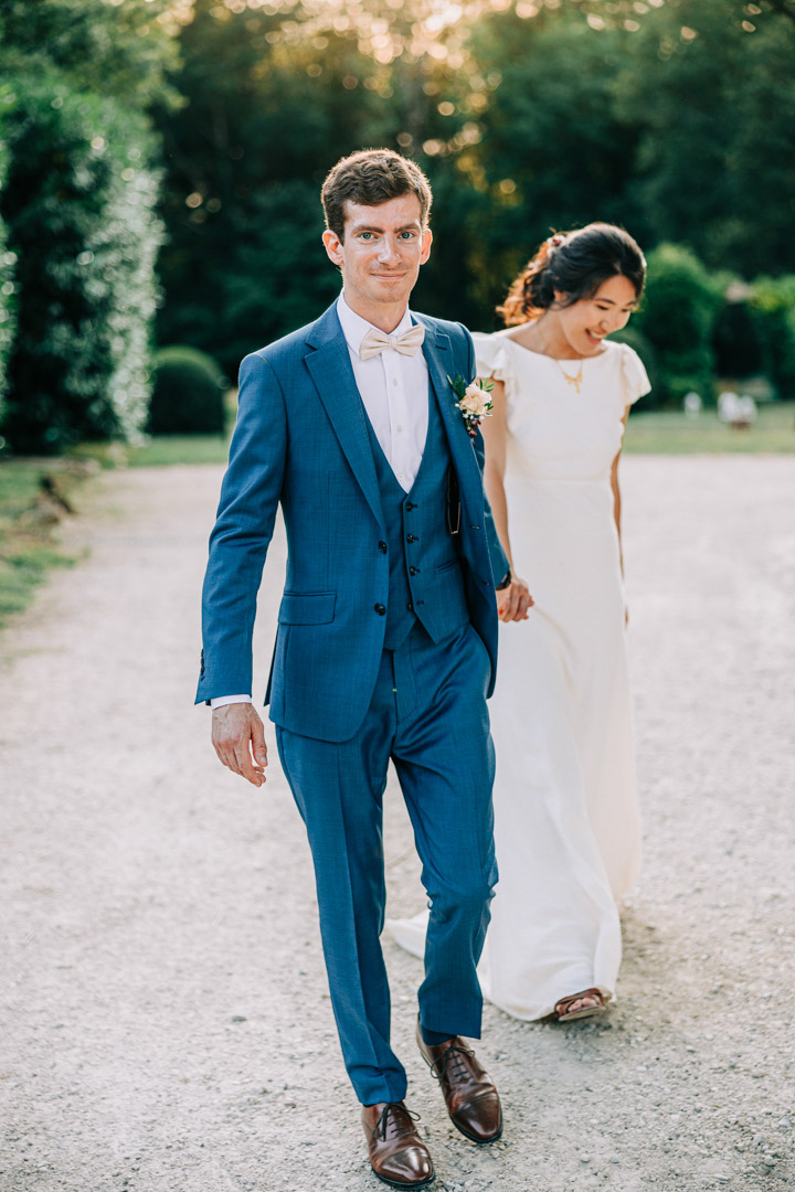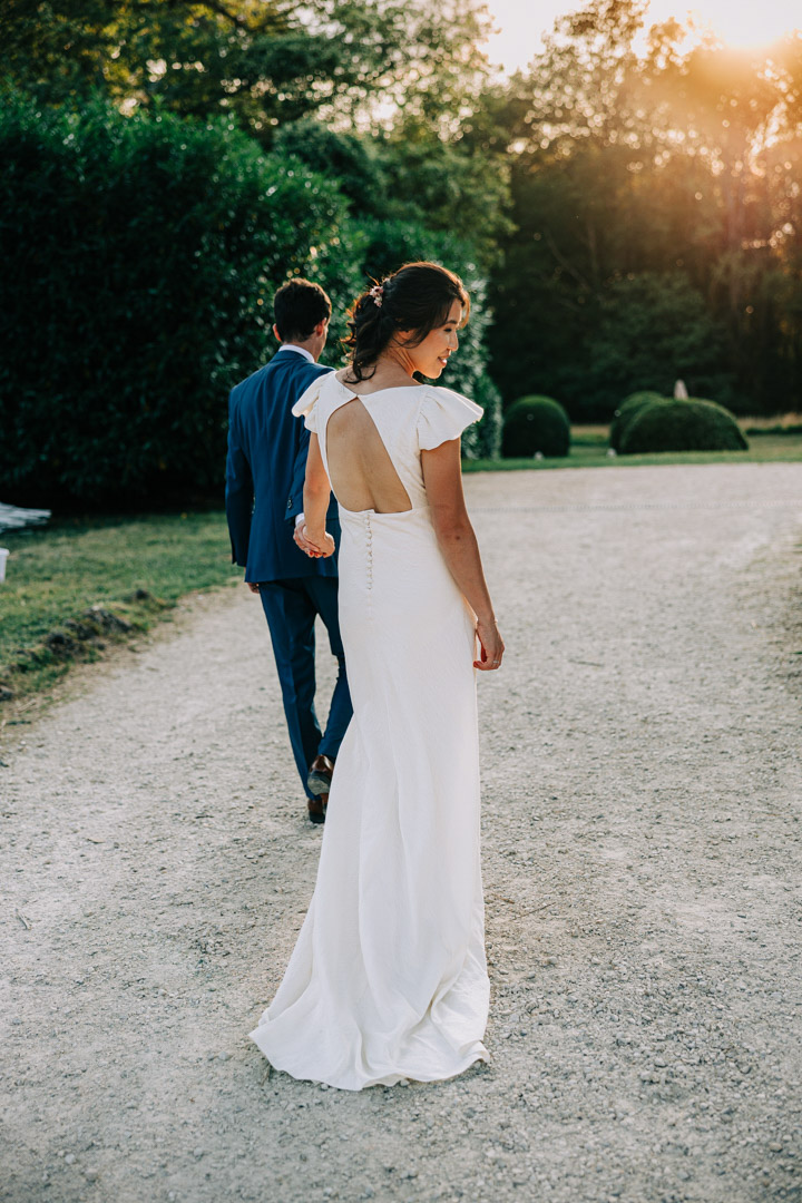 Après la cérémonie, les photos de couple se sont déroulées dans les jardins du château et dans les allées bordées d’arbres. La vallée de Chevreuse possède une lumière très douce, particulièrement en fin de journée.