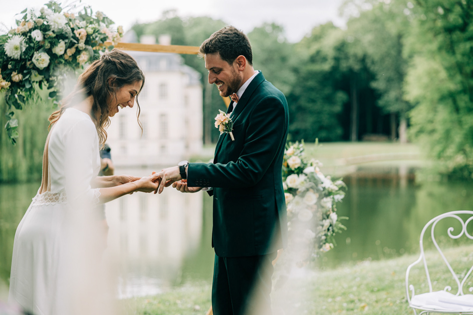 Ce jour-là, le château de Verderonne offrait un décor d’une élégance rare pour une cérémonie laïque en extérieur, installée face à sa façade. Une perspective parfaite, une lumière douce, et ce silence particulier qui précède toujours les moments importants.
