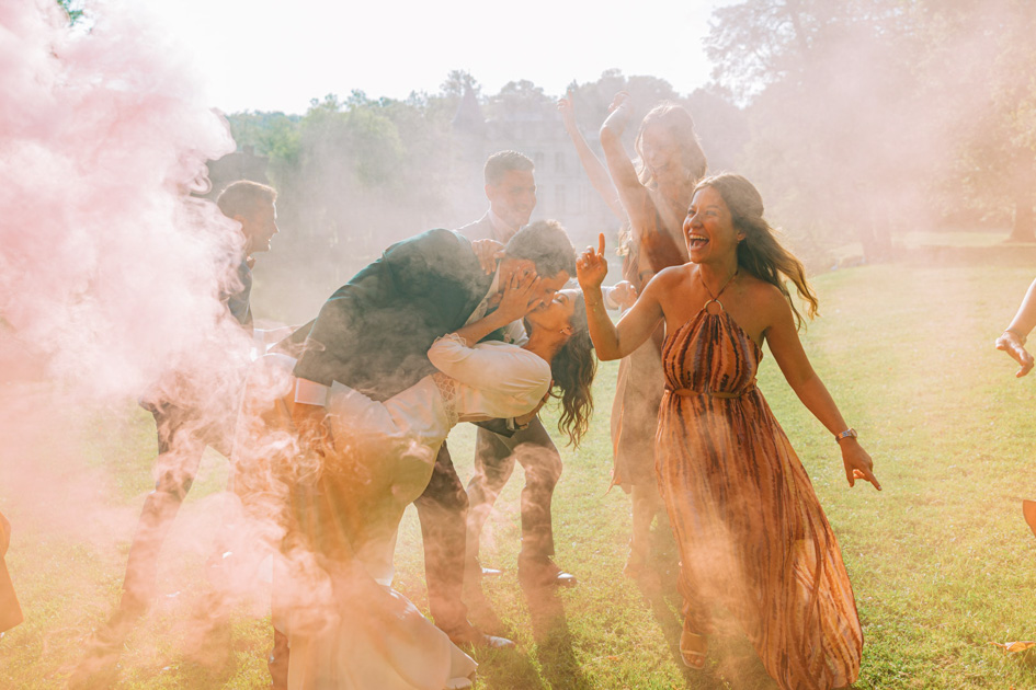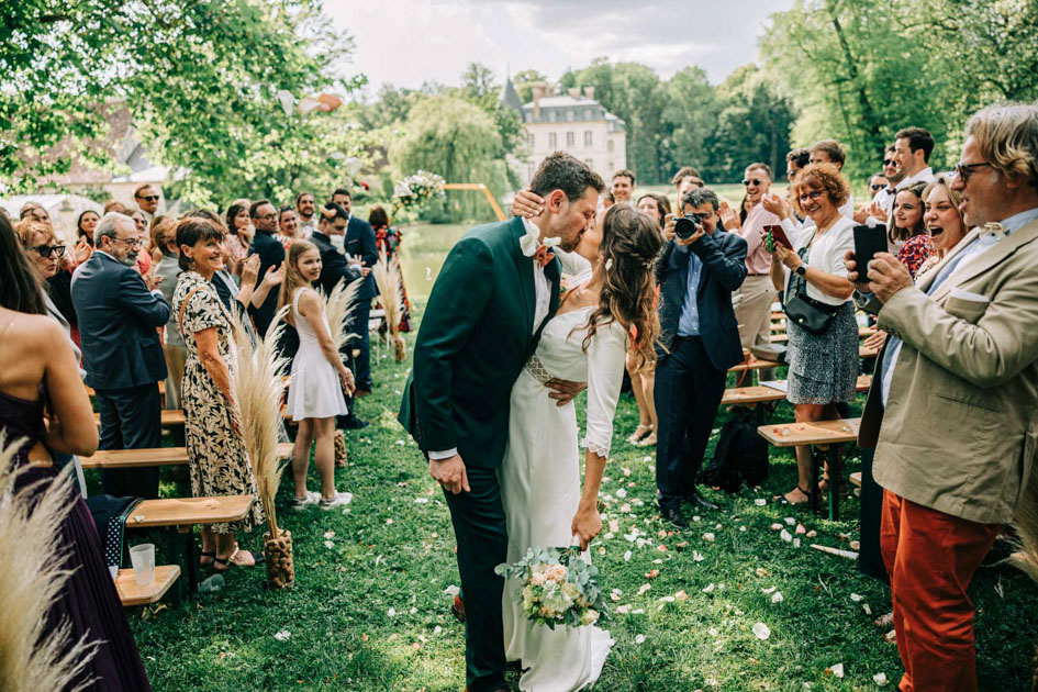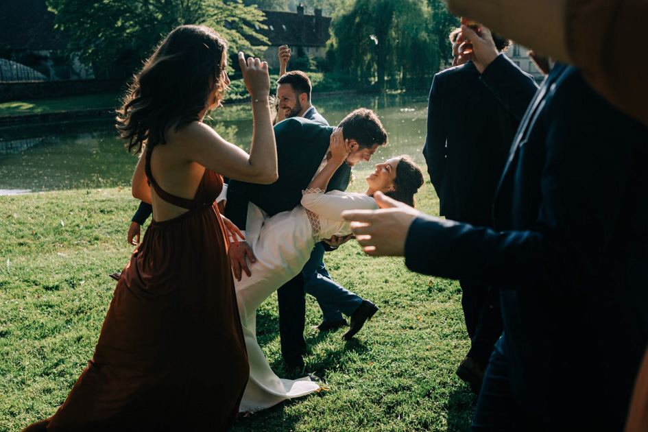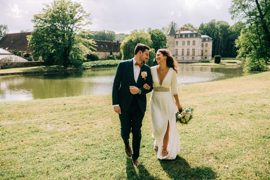 Cette maîtrise du lieu permet de créer un reportage photo de mariage naturel et intemporel, où chaque image s’inscrit dans une continuité visuelle. Les photos de couple se sont faites dans le prolongement de la cérémonie, sans rupture, dans les jardins et aux abords du château, en laissant les mariés évoluer librement.