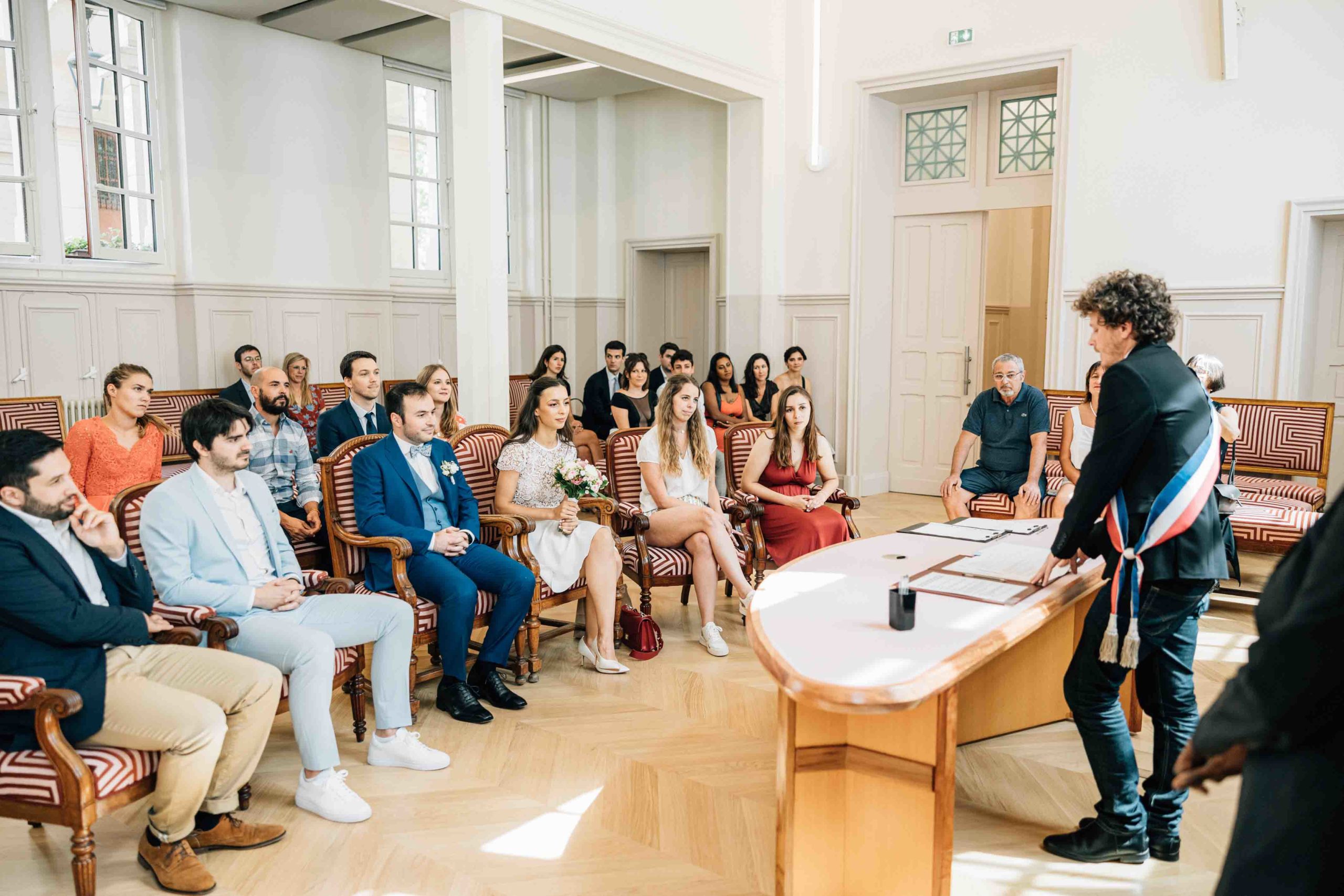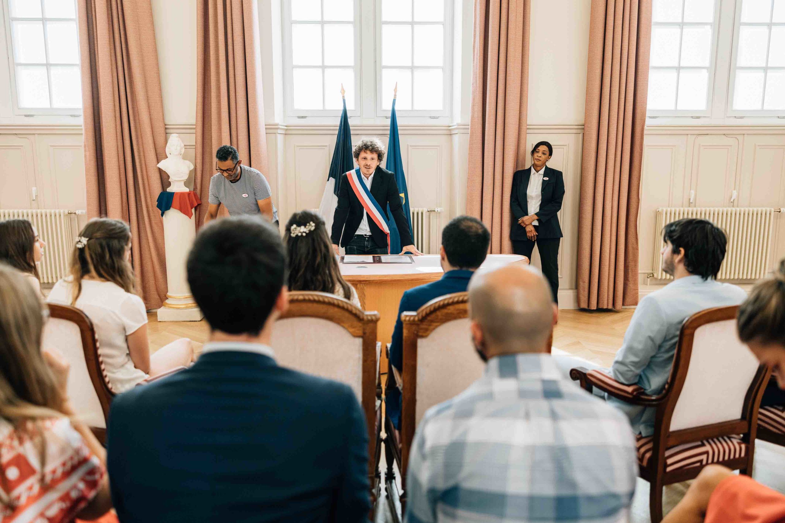 La cérémonie civile se déroule dans la salle des mariages de la mairie. Elle est généralement simple et officielle, mais reste un moment très fort pour les couples et leurs proches.