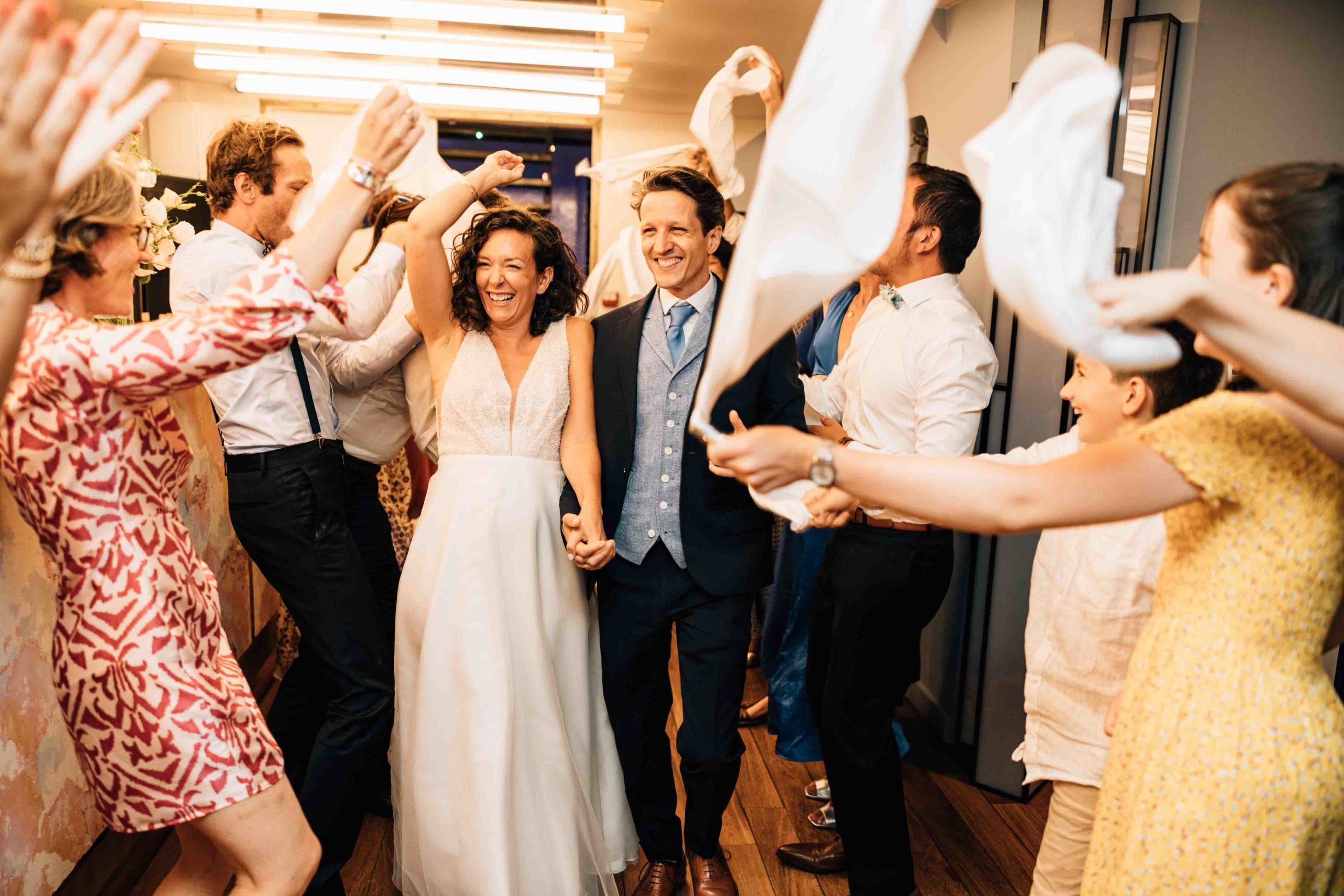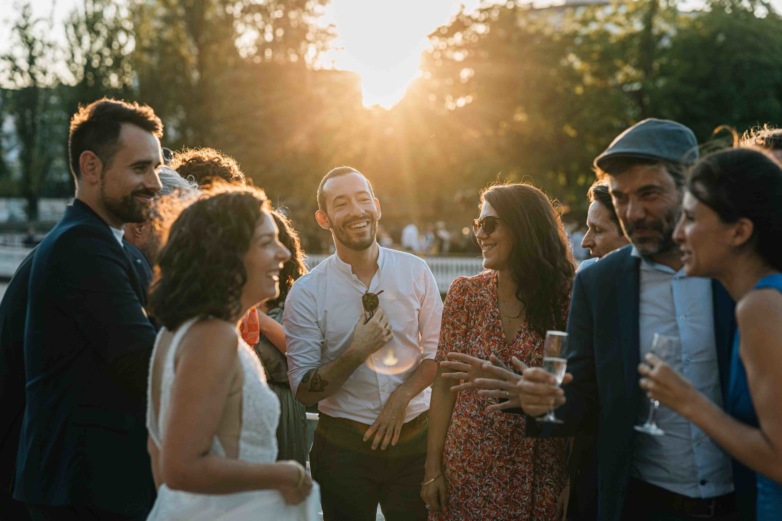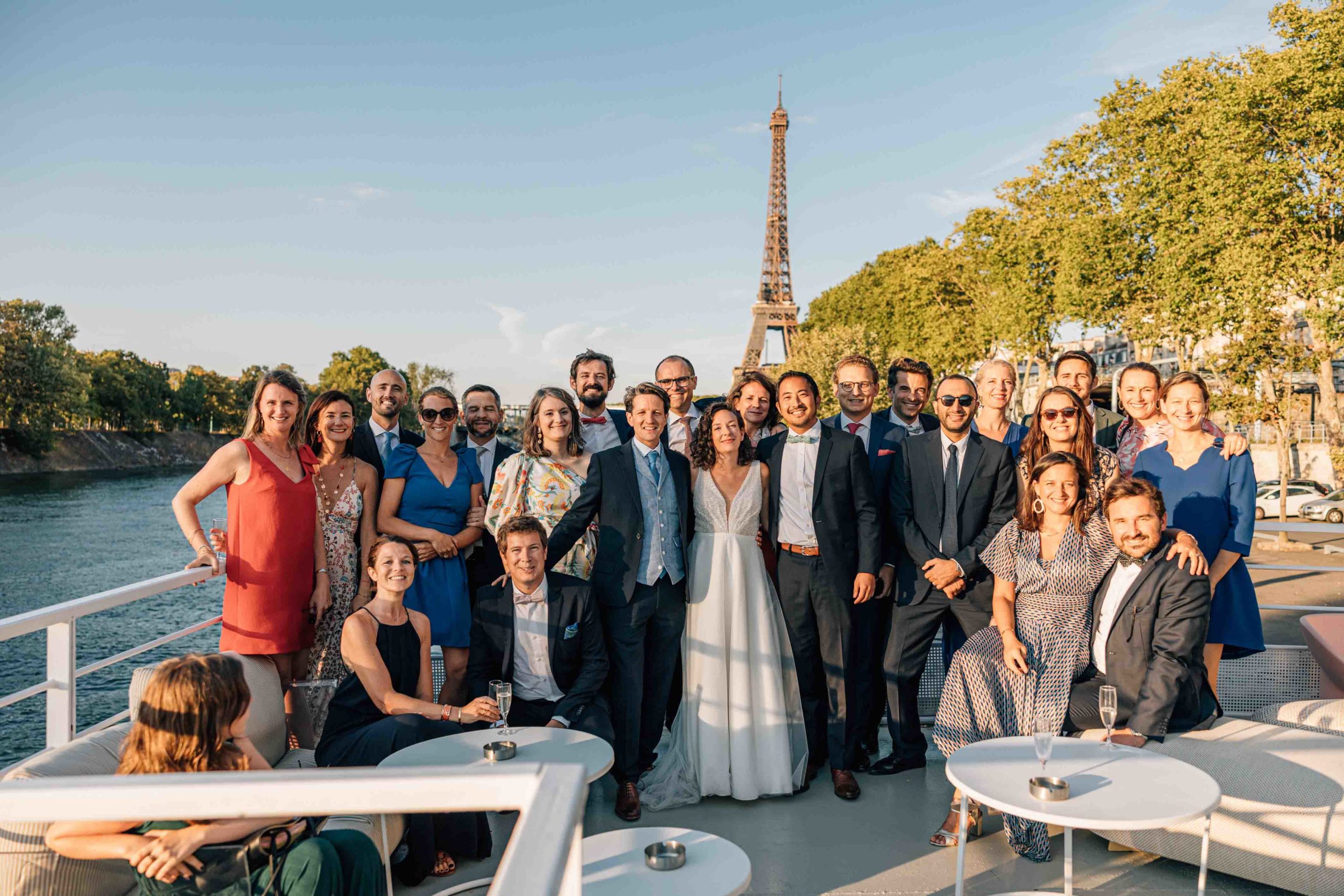 Les échanges entre les invités, les rires pendant le cocktail, les regards entre les mariés lorsque la péniche passe devant un monument… ces instants racontent véritablement l’histoire de la journée.